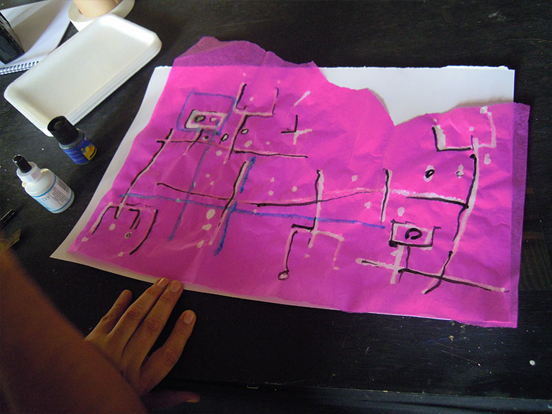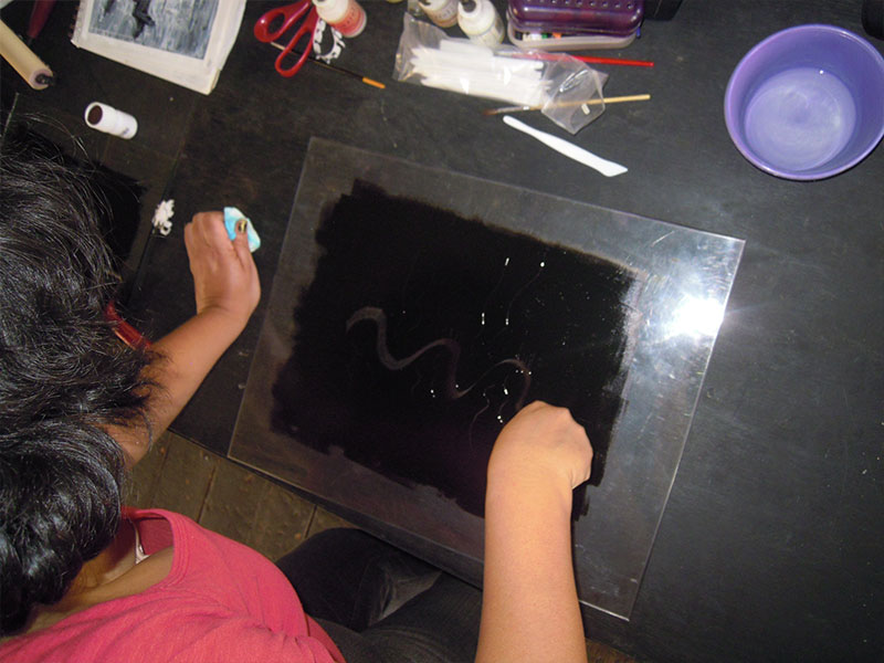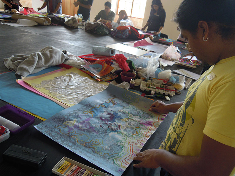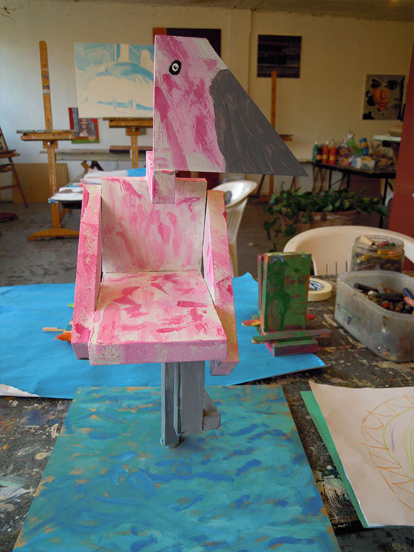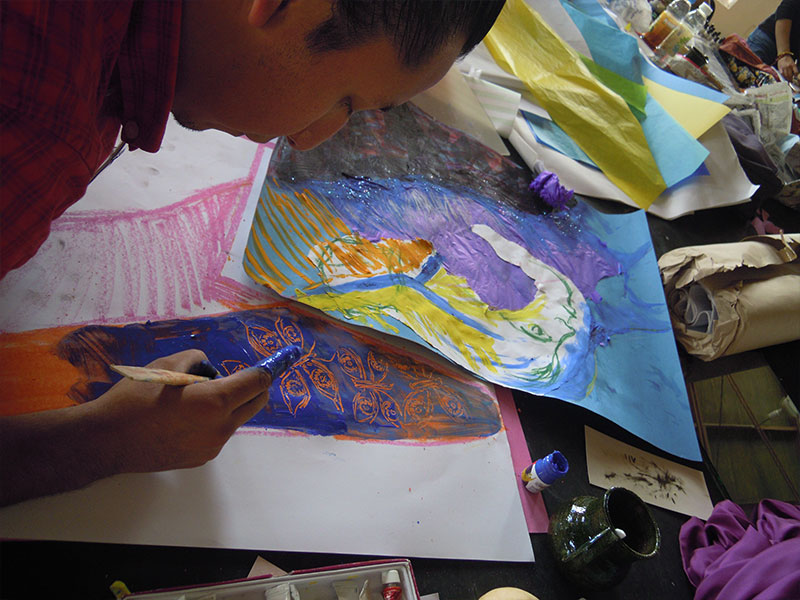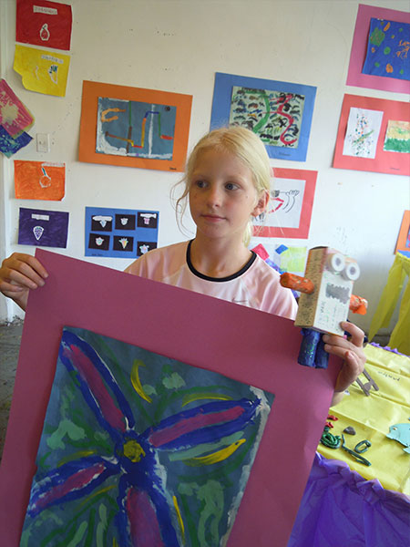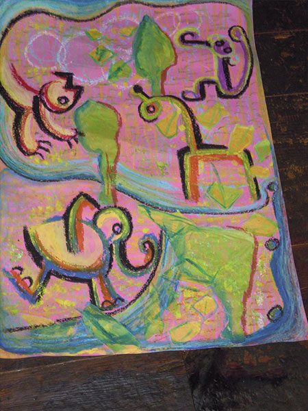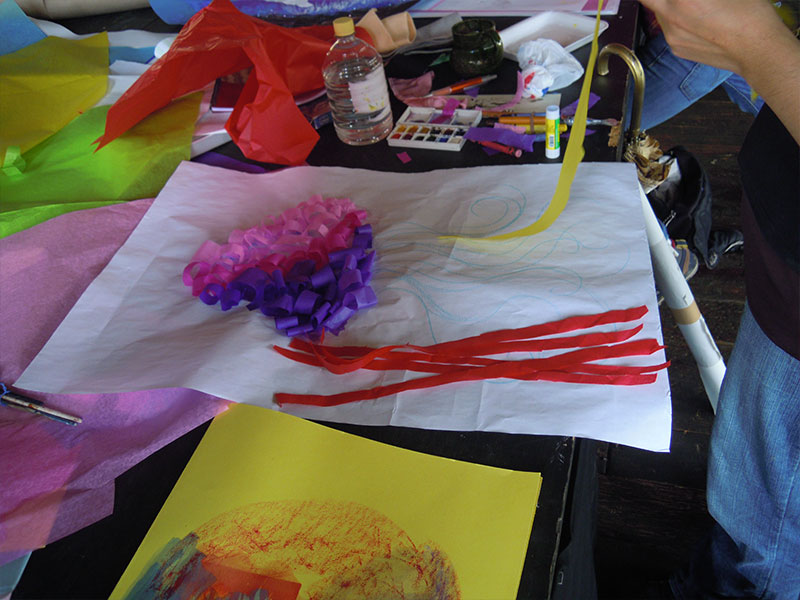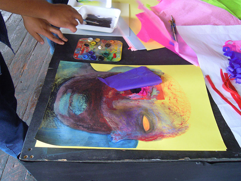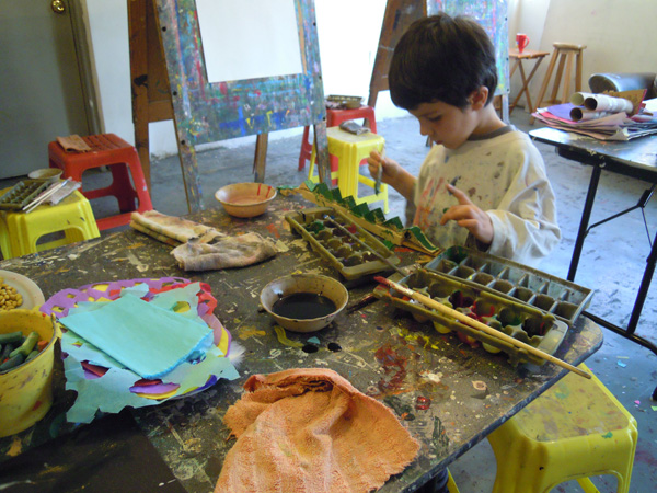 Además de mi trabajo como artista, llevo diecisiete años impartiendo el taller de arte para niños. Para mi resulta un alimento indispensable estar en contacto con la creatividad que se encuentra depositada en ellos.