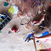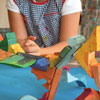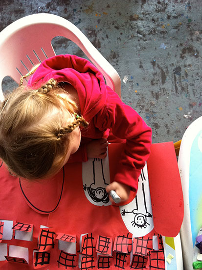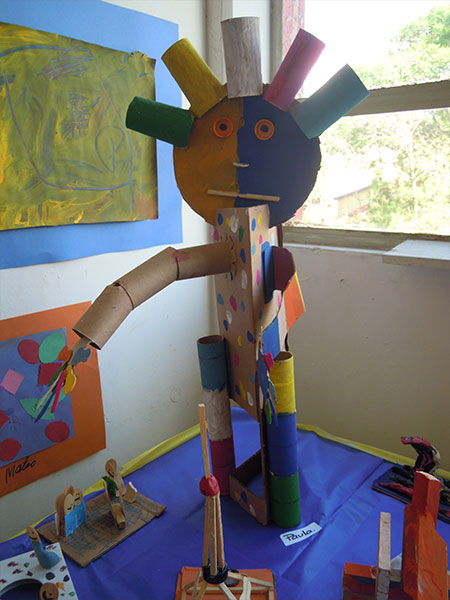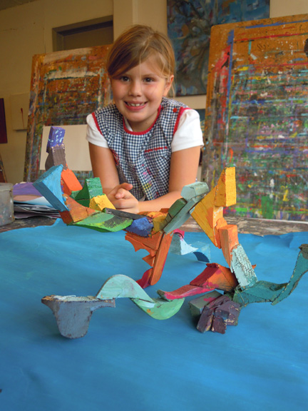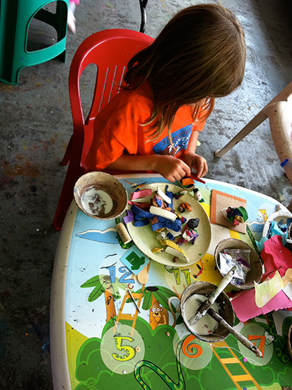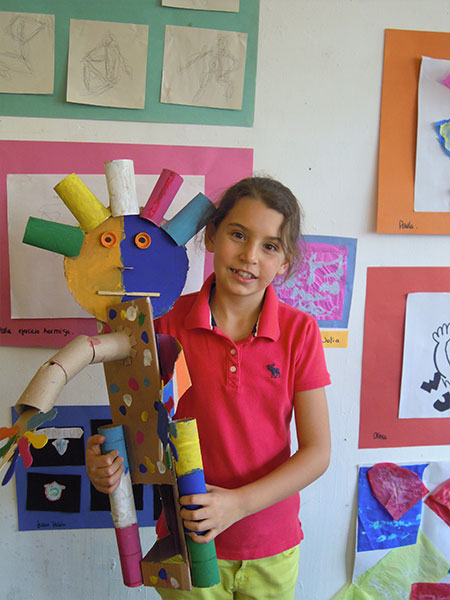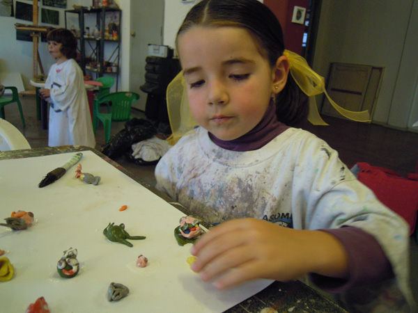 En el taller los niños se encontrarán con una gran variedad de materiales que, guiados por mí a nivel técnico, usarán para poder expresarse. Creo que la etimología de la palabra educar que viene del latín educare que significa sacar o extraer, expresa lo que hago en el taller: sacar lo mejor de cada uno de los niños.