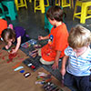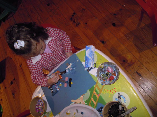 Los niños pueden elegir la actividad que desean realizar durante la clase, bajo mi supervisión, que pretende estimularlos para experimentar con el material, sin imponer en ningún momento ningún tipo de modelo, ya que creo que esto limita su creatividad.