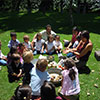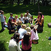 El taller está acompañado con la audición de música clásica desde la antigüedad hasta la música contemporánea, y siempre durante la clase tomo unos momentos para hablarles sobre lo que estamos escuchando.